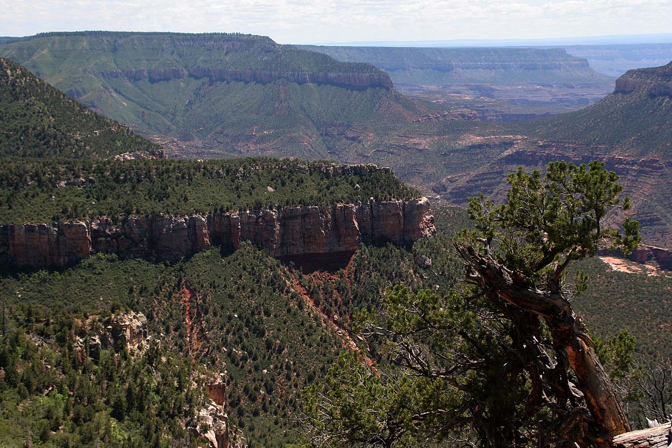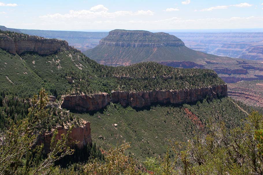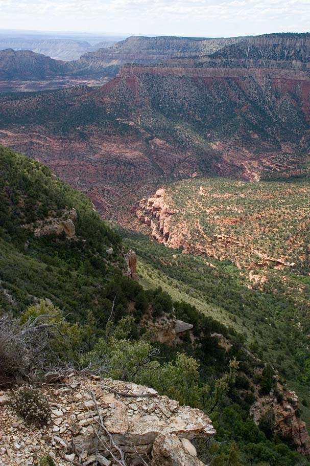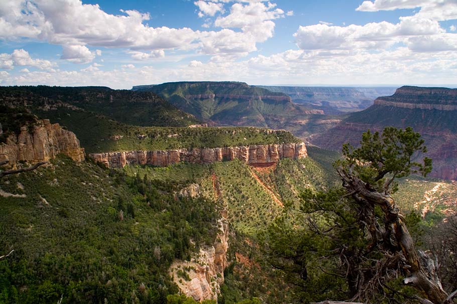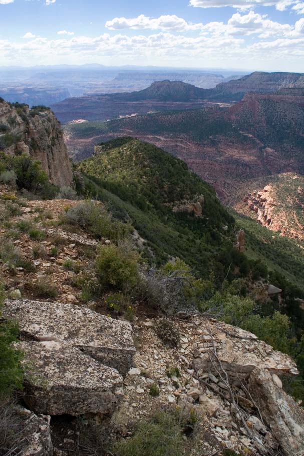 out into the Grand Canyon and then follows mild drainage contours around to the