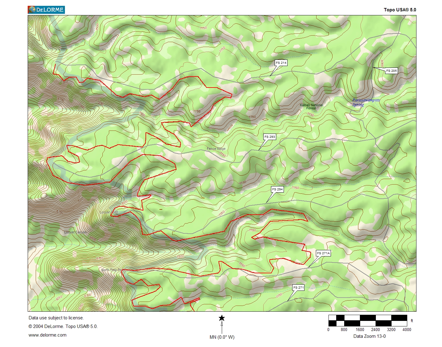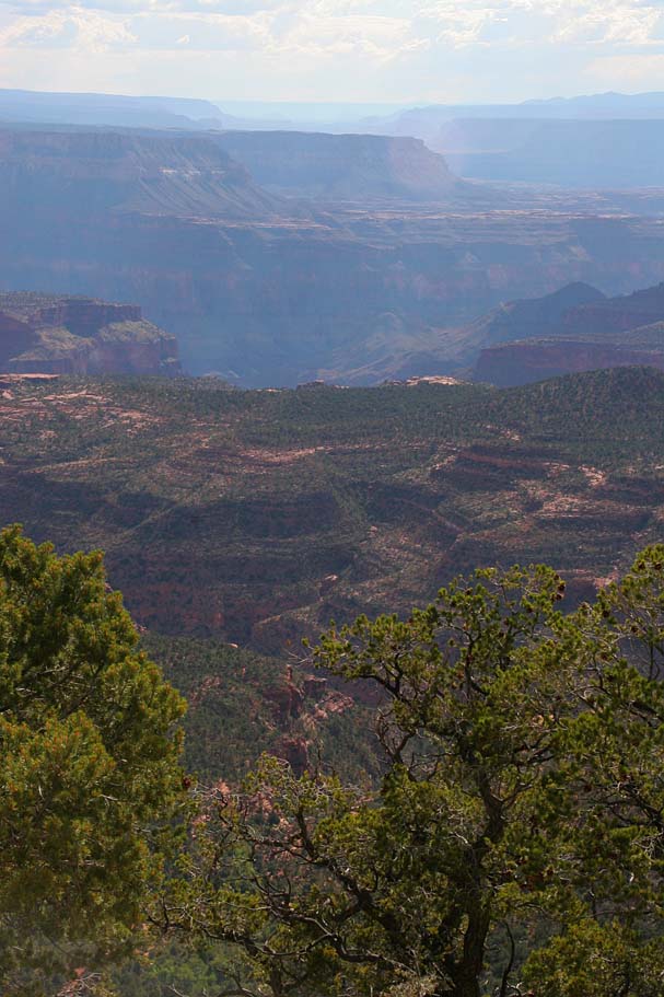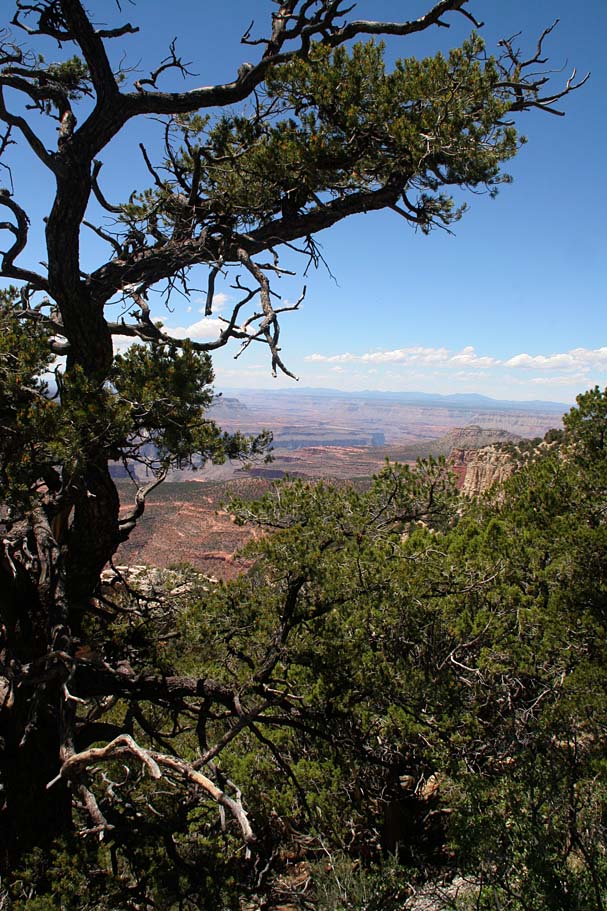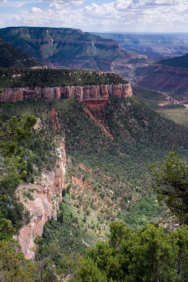 out into the Grand Canyon and then follows mild drainage contours around to the
