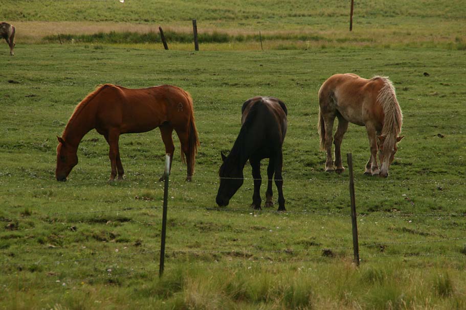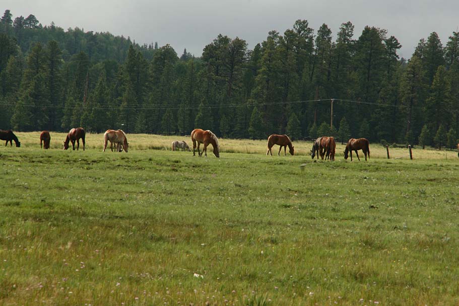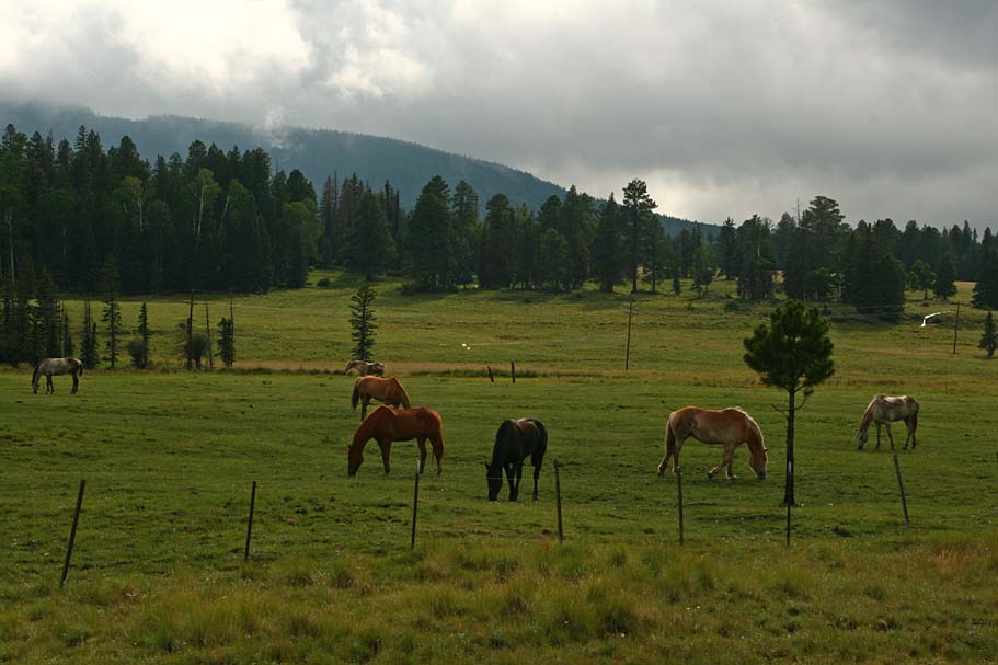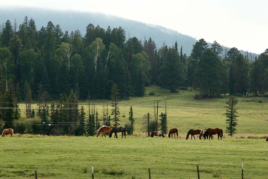 There are a couple of handfuls of trails coming off the peak that are categorized in the standard ski-park method of circles, squares and black diamonds. We started off down one of the intermediate runs and then cutover onto one of the single black diamond routes. The rain started up again it did not seem to be too much of an issue for the trails as soil just seems to either soak it up or shed it off nicely as it is predominately volcanic rock. Most of the trails twisted through the trees but there are some runs that were straight blaze fests right down the mountain where it is not a matter of how fast you can go, but how fast you are willing to go. Since my camera is not water proof it spent much of the day in the pack. We only made three runs down the mountain before the rain settled in for the long haul, but what we did get in was pretty darn fun. Despite being pretty much soaked on the trail we managed to stay fairly warm. It was not until the road ride back to the RV that a chill set in pretty quick. I was pretty thankful for easy access to a hot shower. We spent the rest of the evening lounging in and around the RV (In between the rain). Fady is a fan of horses so we spent some time just checking them out and even managed to see both some wild turkeys and elk that evening.