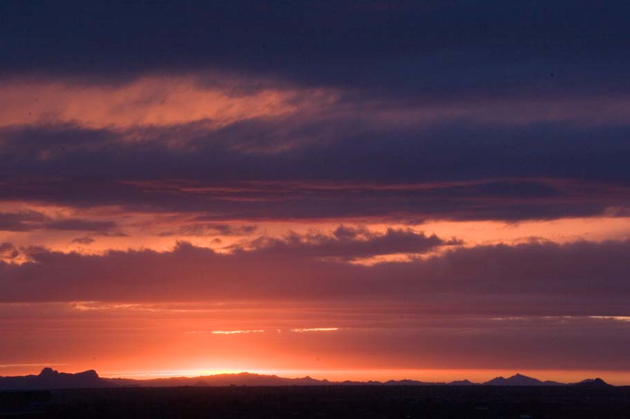 images/Trails/AZ07/AZ07-Tuscon-50YR-13JAN07-32.jpgimages/Trails/AZ07/AZ07-Tuscon-50YR-13JAN07-33.jpgOnce back at the truck and enjoying our last microbrews to have survived the trip we got to witness a truly awesome sunset.  Luckily I had a tripod stashed in my truck and I put it to good use.  There was a magical two or three minutes when the sun dipped below the clouds and painted the Catalina Mountains with the most incredible red and purple hues as we watched the sunlight walk up the mountain and light up the entire range.  It was over far too quickly as no sooner than the light danced up the mountainside the dusky shadows followed behind it.  It was a breath taking vertical light parade and the pictures here did little to capture the moment.
