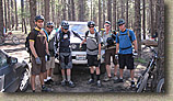 Day One was the travel and squeak in a ride day. I met Bill O'Neil at O-Damn Early on Friday near the I-10/I-15 junction where his truck would remain for the trip. We where soon making exceptional (and illegally) good time towards Flagstaff. We were in town by noon and after picking up some camp essentials were headed towards camp on Schultz Pass Road. Jeff had gotten a big head start on us the night before and shortly after starting up the dirt road we came across him. He had skillfully planned his ride that day so that he would be climbing the road back to camp while we were headed in. We loaded him and the bike up and continued up the road. Shortly thereafter we were flagged down by a couple of hikers who had gotten turned around on the mountain and where now a long way from their car. We dropped the tailgate and gave then a tailgate cruise back up to their car. It was nice to grab some good karma right out of the gate on this trip.
