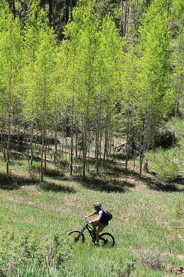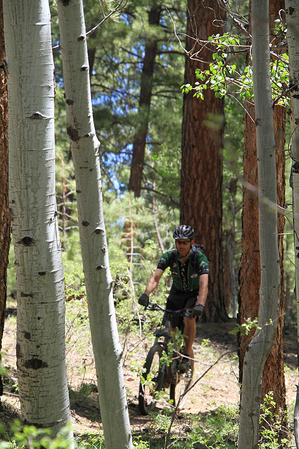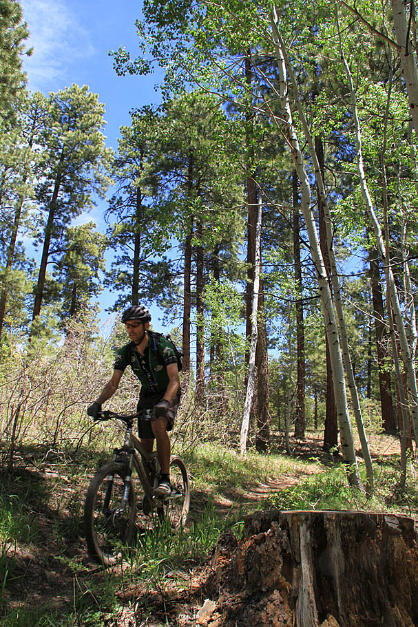 The trail undulates mildly for most of the time as you gradually descend out to the points and then climb back away from the points before contouring around through the mid-point drainage. When you do not have the Grand Canyon vistas, you have some sweet single track meandering through the mixed pine and aspen forest.