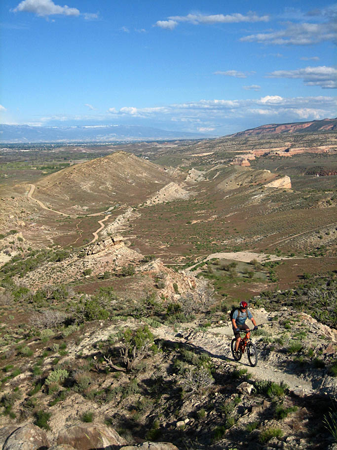 When climbed our way up to a second viewpoint which was even better than the first. We could see most of the trail system below including Mary's and Horsethief Bench. We could even see a couple of dot-sized riders out on Horsethief Bench. At this point we realized that we were running a bit short on time.