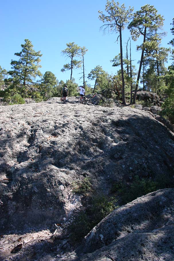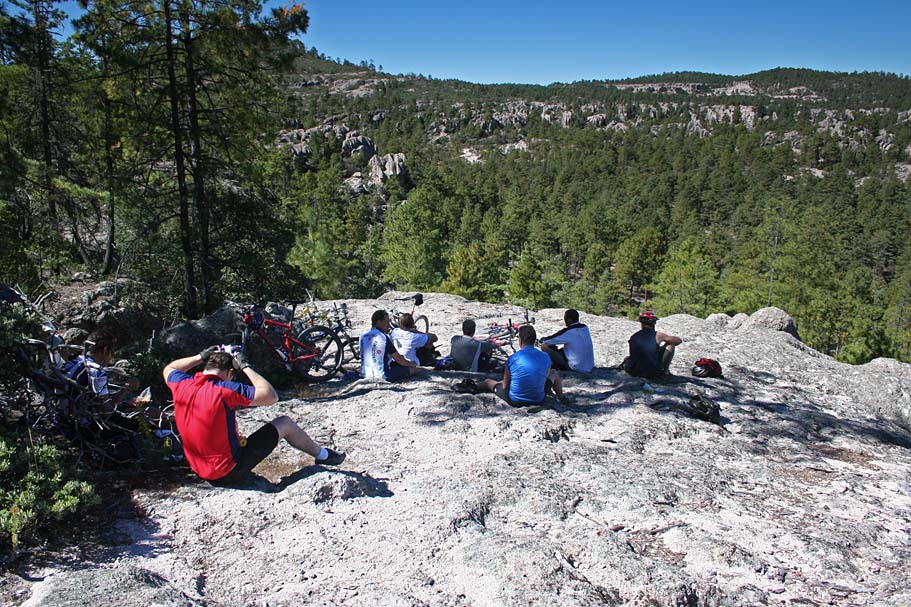 After regrouping at the top of the climb we rolled along a forested mesa before we made a quick and technical descent into another narrow valley where we promptly came to an extremely tough hike-a-bike. In some portions it required us to hand our bikes up to the next person and then use a bit of rock scrambling skills. My MTB shoe selection was not the best for this terrain and I puckered on at least one occasion.