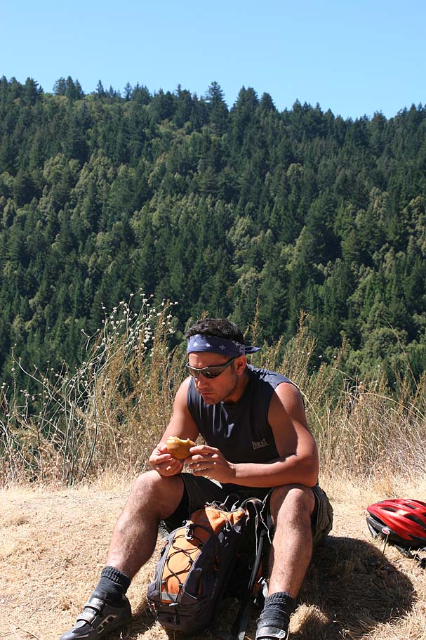 Directions: This ride is located between San Jose and Santa Cruz, so from either city head towards the other on Highway 17. When you get to Patchen Pass (The Summit), exit onto Summit Drive. Take Summit east/southeast about 10 miles. Somewhere along the way Summit Drive becomes Highland Way. There is also quick right-then-left intersection at Mt Bache Road and Spanish Ranch Road. Highland Way is prone to landslides and about 3/4th of a mile or so before we got to the trail head there was a Road Closed sign. After surveying this section and seeing several cars riding on the road we proceeded down to the trailhead. There is a small trailhead right on the side of Highland Way next to a bridge. There have been some car windows broken in this lot in the past so you may want to cross the bridge and follow Hahn Mill Road about 1/4th of a mile to a large gravel parking lot. There have been no problems reported there.
