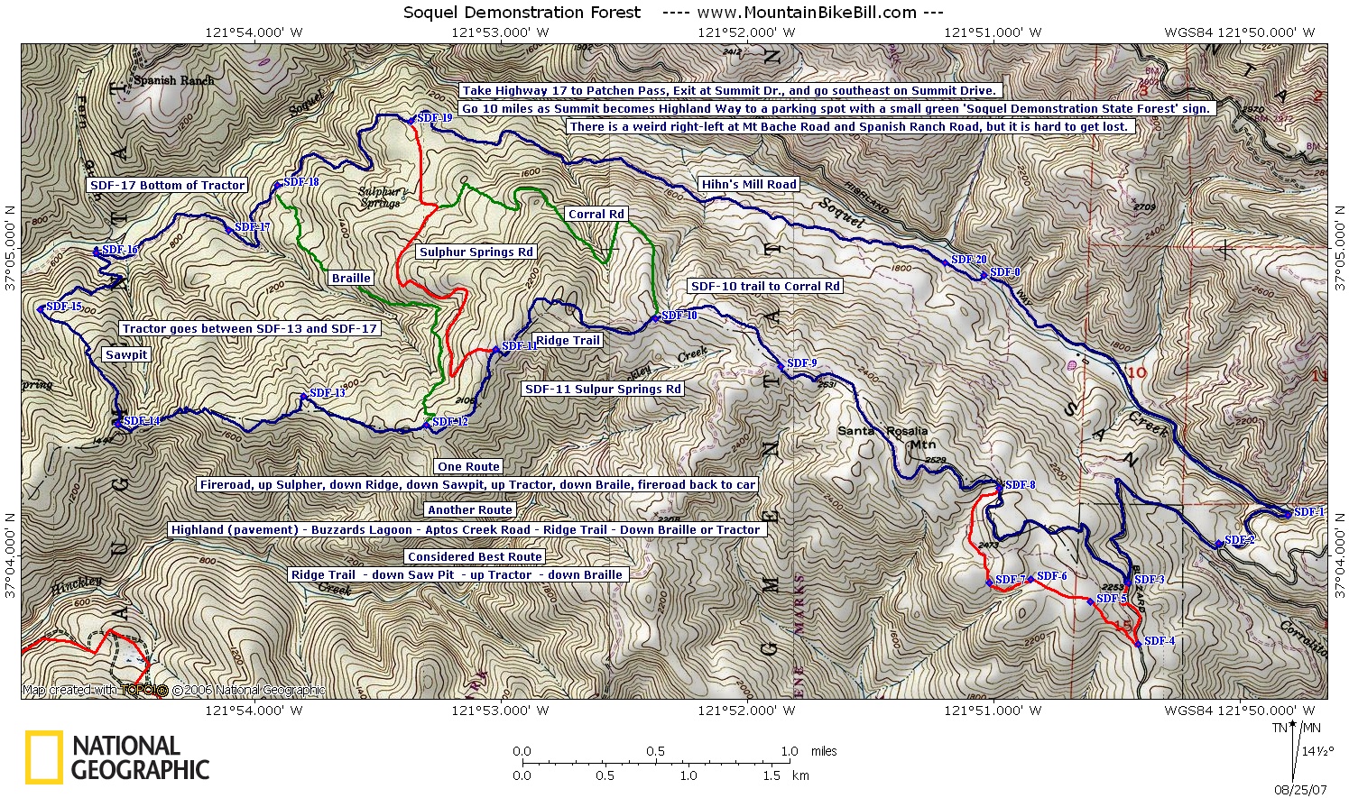 the contours and popped you back out on Aptos Creek Road at SDF-8. Anyway,