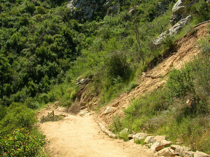 Note: Over the years The Way Up trail has seen it share of damage and rework. In the winter of 2005 a landslide and other significant damage, caused by near record rainfall, forced the closure of the park for several months. During that time extensive repairs were done to The Way Up trail to allow for the better drainage and it's long term sustainability. In the short term, folks wanked about the trail being neutured and looking rather "clean", less rocky and rutty. Since then the trail has seen further rework and armoring and as of 2022 there is plenty of the old character of this trail. It maybe harder these days.