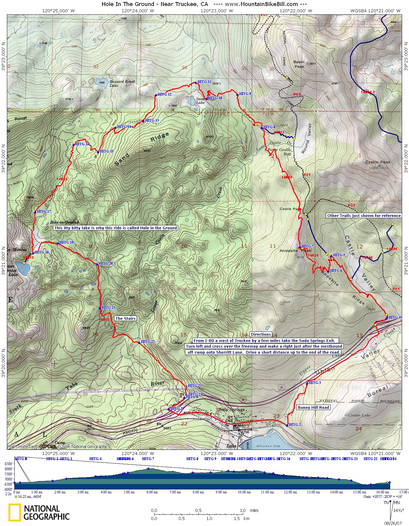 In July of 2007, I rode the "Hole In The Ground" trail in Sierra Nevada mountains near Truckee CA. This is an extremely pictureque place with nice singletrack that favors a strong intermediate rider. There was plenty of incredible flowers in bloom while we were there as well as vibrant greens from grass that seem to be happy to be free of snow.