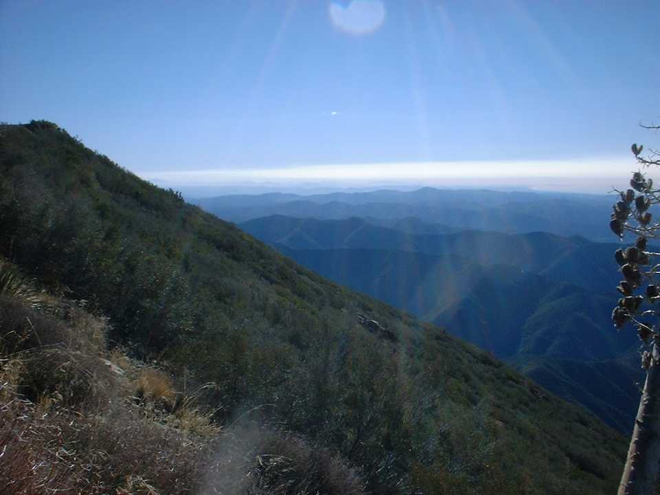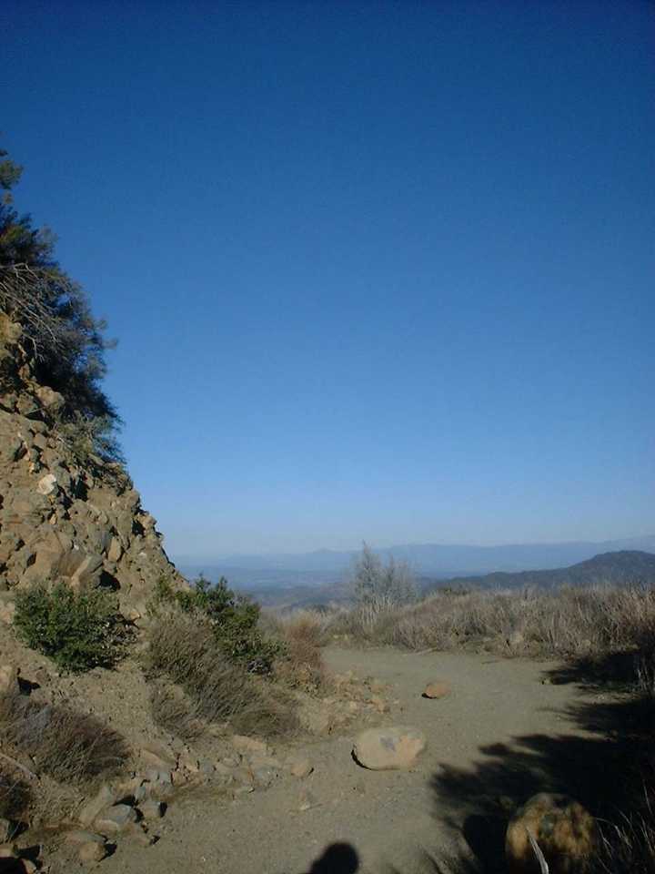 The section up the Main Divide Truck Trail to Mojeska Peak (or at least the closest the truck trail gets to it) was a little easier going than Harding Truck Trail. During this section I saw a few remnants of snow in the shadows along the trail. Once up to Modjeska Peak there was another one of those cruel losses of elevation that you will just have to regain. This time however I was in the sun and a little protected from the wind so screw the wind chill I blazed. It was quickly over and I was on the final section headed up to Santiago Peak.