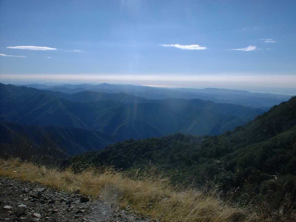 The Harding Truck is a long climb up of nearly nine miles that is sure to push your lungs and legs. While not a technical climb it is quite strenuous gaining a little over 3,000 feet in 8.9 miles. There are some absolutely fabulous views on this climb. While you could just turn around when you get to the Main Divide Truck Trai, the money is linking up with Silverado Motorway, Holy Jim or the Joplin trails for a really big loop. The first time I did this climb I continued on upward along the Main Divide Truck Trail to the highest peak in Orange County, Santiago Peak with an elevation of 5,687 feet. From here I continued on down the other side of the peak to the Holy Jim trail and then did a pavement return back to the Harding Truck Trailhead for a total of 36 miles. On another outing I dropped the Joplin Trail.