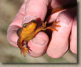 That final 1/4th of mile gets shaded again and contains of series of switchbacking wooden steps. Most of it is build pretty shoddy and doing little to help either erosion or function as steps. Just as we were doing the last steps. Steve spotted a California Newt on the trail, I have seen a few of these before and they are always pretty cool and pretty. They are somewhat brownish on top with a bright orange belly. They virtually have no natural enemies as their body contains a powerful neurotoxin which is harmful to other animal species including humans. The toxin is so powerful, that only 1 drop can kill up to 7 000 mice. It is the same kind of stuff in the infamois Puffer Fish. Lucky for us humans we need to injest the toxin for it to take effect. |