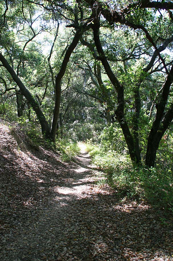 turns downhill into an sizeable oak grove which is a real change of pace