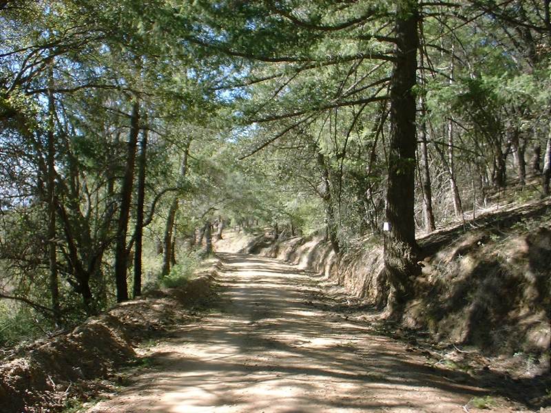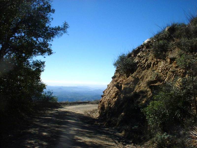 Turn left out of the school, go 1/2 mile to the 76, turn right along the 76 for about 1/4 mile, turn left onto Nate Harrison Grade. You will be glad you started at the school as it will give you time to warm up. The ride starts off at on payment but a little less than two miles from the school into it turns into a dirt fire road. Other than one very short piece that's flat near the top it's nothing but a climb the whole way. The climb is not technical whatsoever as it is hard packed dirt that's for the most part smooth with a few exceptions where 4WD types have dug some ruts. After the 2007 wildfires a couple of small sections of the climb were paved as an erosion control method. This climb is quite grueling from a strength perspective. I would say if you don't ENJOY the challenge of a good climb then don't put this ride on your to do list. If you are up for it, this climb will make you a better climber as it forces you to find a workable pace as spinning all the way in the granny gear will make for a long day.
