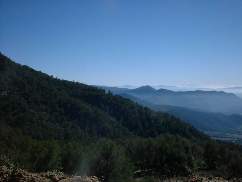 Nate Harrison Grade is on the southwest side of Palomar Mountain in the north end of San Diego County. This is one continuous climb that will certainly test your climbing strength. It has an average grade of 8% over 11.1 miles with some parts being much steeper. With almost 4700 feet of climbing this is a great workout ride with the reward of stunning views and a real sense of accomplishment at the top. A portion of the south slope of Palomar Mountain that Nate Harrison Grade passes through burned in the 2007 wildfires. While the impact is still noticable, the flora has been recovering nicely.