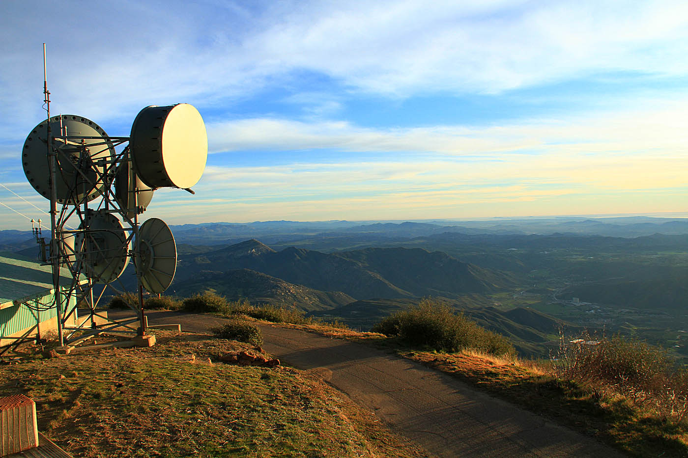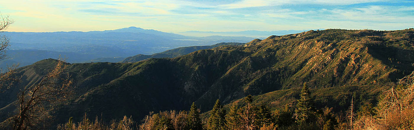 San Jacinto Mountain in the distance can be seen as you near the top of the Palomar Ridgeline At around 9 miles (from the school) the trail turns into narrow payment that is broken in many places. At around 10.5 miles you come to a five point intersection. Take the hairpin turn up to your right up to Boucher Lookout (there is a sign). At 11.1 miles you reach the lookout at 5438 feet. Take in views of the nearly 4700 feet you climbed to get here.