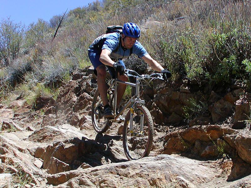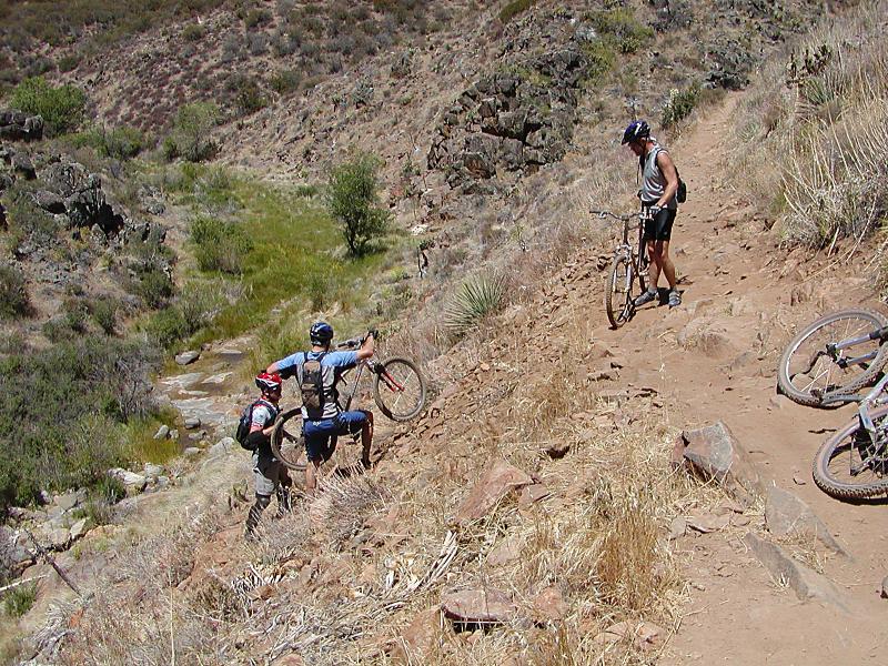 Hazards: Treacherously technical trail with steep drop offs just off the trail in spots. Noble Canyon is not a place to bring a beginner or someone just breaking into the intermediate catergory. For San Diego locals, if Miner's Ridge Loop at Black Mountain gives you fits, you will most likely not be a happy camper on Noble Canyon. DO NOT underestimate the late spring to early fall heat or overestimate how long your hydration is going to last! The lower portions of the trail can get be much hotter than the general surrounding area with little shelter from the sun .