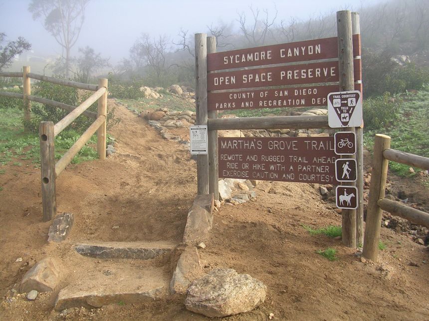 | MAIN TRAILHEAD - From I-15 exit at Poway Rd. Take Poway Rd. to Garden Rd. Take Garden Rd. East to Sycamore Canyon Rd. Take Sycamore Canyon Rd. south to the parking lot at the end of the road. | |