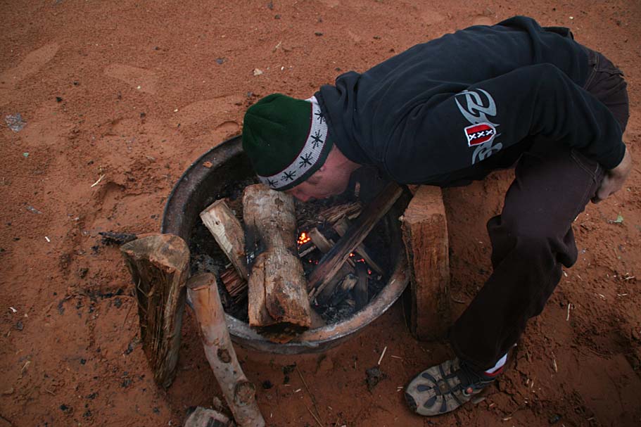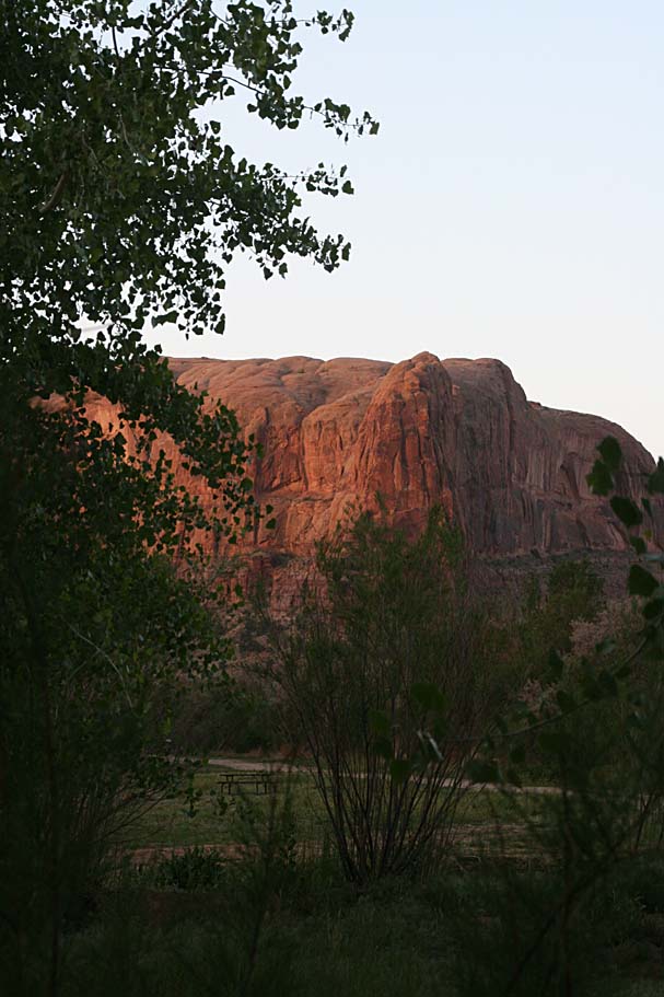 After coffee, we headed over to a bike shop to get some information on what would be a good post-rain day ride around Moab. Poison Spider Mesa was high on the list if the rained stopped soon, a breeze picked up and we waited until mid-morning or so. On our drive back out to the campsite the rain stopped so we kept our fingers crossed for tomorrow. Back at camp we managed to massage a campfire into action while tested a few of our cold beverages to ensure their flavors had survived the storm. After we were throughly satisfied that the contents of our cooler were still okay, we crashed for the night.