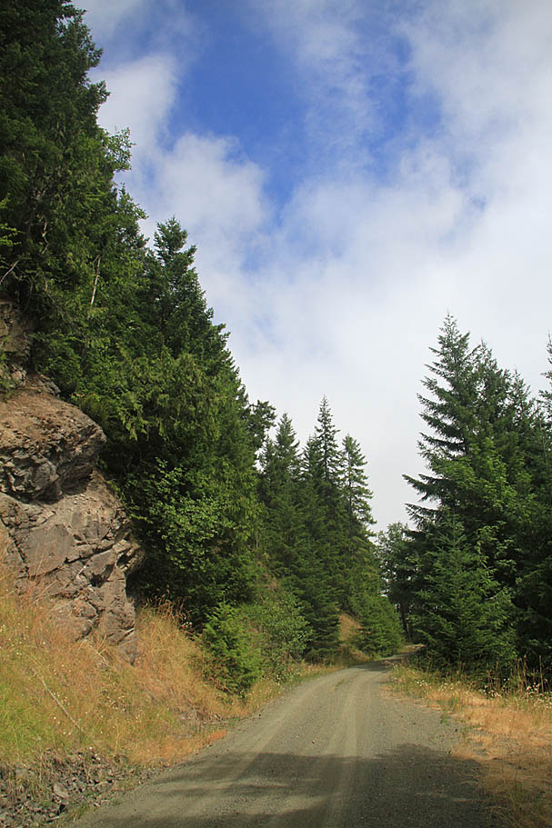 At 7.5 miles the trail comes out at a primitive campground and then out onto FS2860. Turn left and you will almost immediately cross a small bridge over the Dungeness River. On the other side of the bridges is a trailhead staging area for the Upper Dungeness trail as well as couple other trails that go up into the Buckhorn Wilderness and eventually into the Olympic National Park. From here pass the staging area on your right and continue on the forest service road. You will climb for a very short distance before the road turns into a downhill cruiser for nearly a mile before the road turns back uphill.