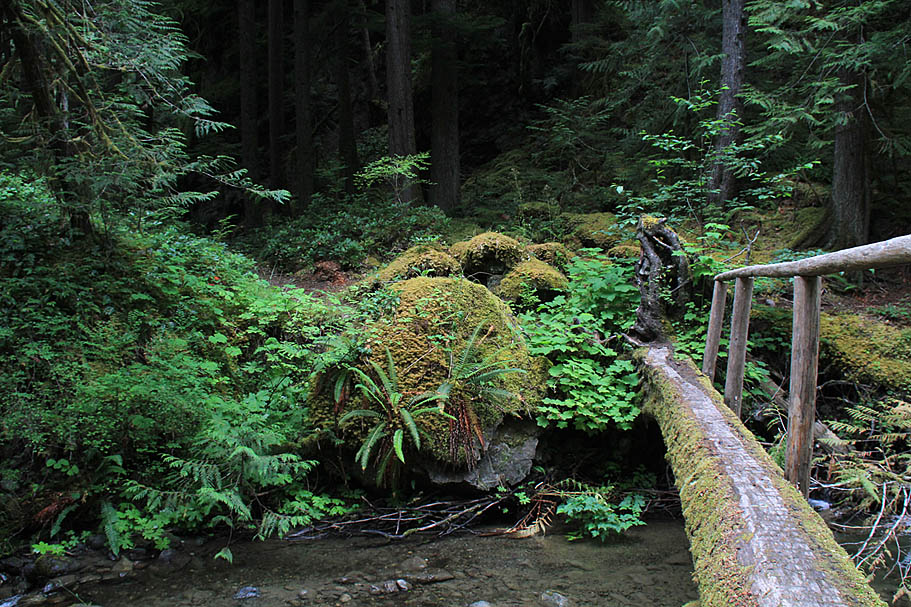 There is a pretty cool log bridge over Gold Creek just before it's confluence with the Dungeness River. The trail then goes down right along the river before making a quick pitch and coming out onto the old forest service road that used to be the way into the place. The forest service has simple decommissioned this road and is letting mother nature reclaim it. The old road already resembles more of a trail than a road now. Bear to your left and head towards a bridge which you should have been able to see just a little earlier. After crossing the bridge (Waypoint LD-GT-08) the trail/old road bears to the left and heads uphill. In a little less than a mile you will be back at the Lower Dungeness Trailhead where you started. If you signed in at the registration box at the beginning of the ride, make sure to sign out before you leave.